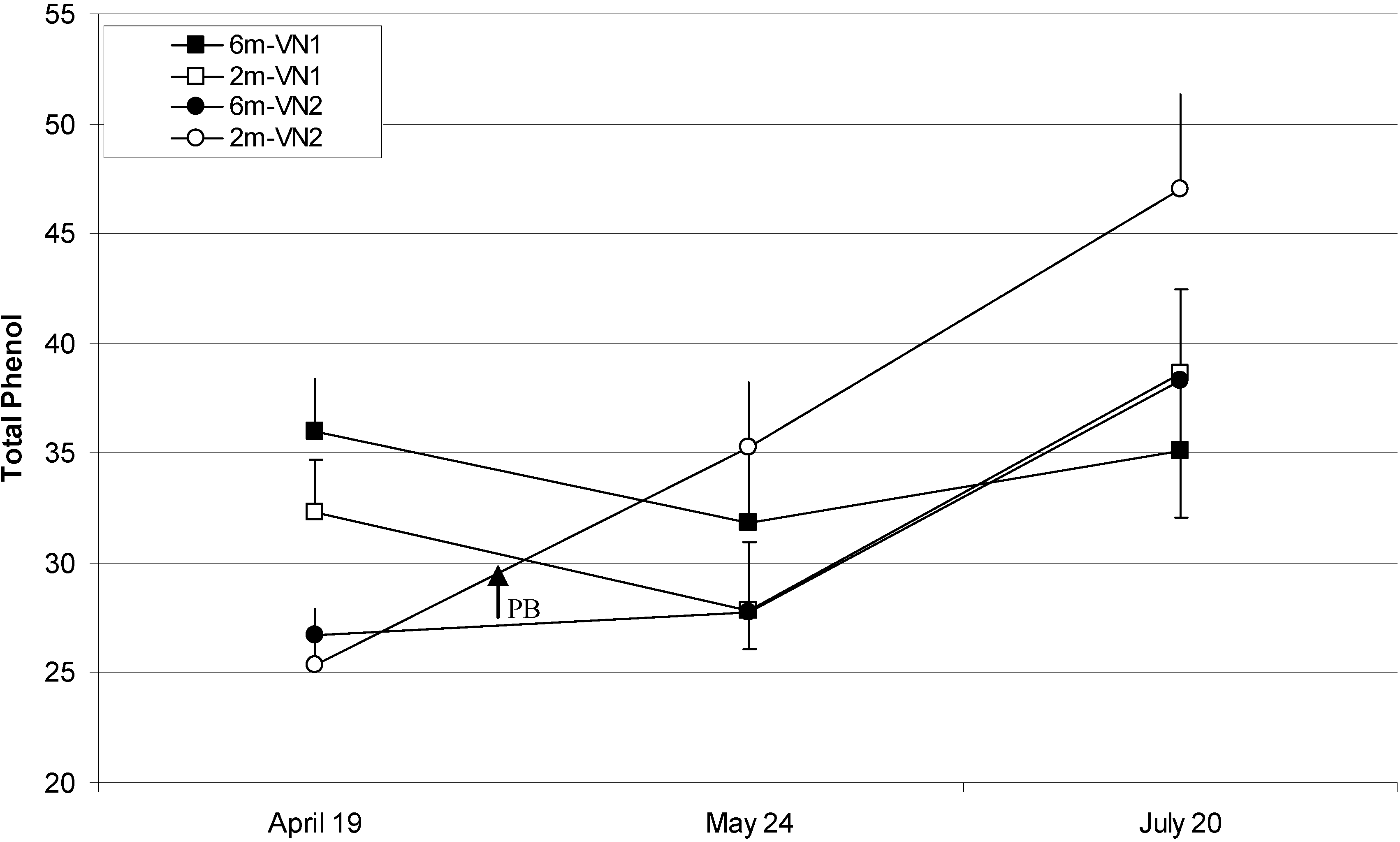 | 1778 | Vanillic acid | 121-34-6 | 166.8 ± 32.0 (a,b) | 198.4 ± 31.6 (a) | 164.5± 5.0 (a,b) | 108.5 ± 1.3 (b) |