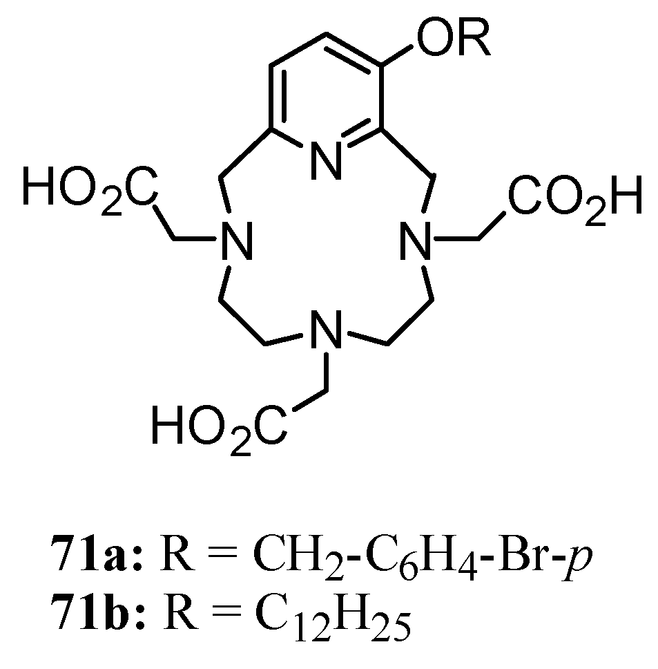 Analogous systems 71 with substitutents on a pyridine ring were prepared using a similar synthetic approach to that employed to obtain 69, starting from the corresponding bis(2,6-chloromethyl)pyridine derivative (Figure 6) [45].