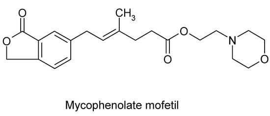 - Lipsky, J.J. Mycophenolate mofetil. Lancet 1996, 348, 1357–1359. [Google Scholar] [CrossRef]