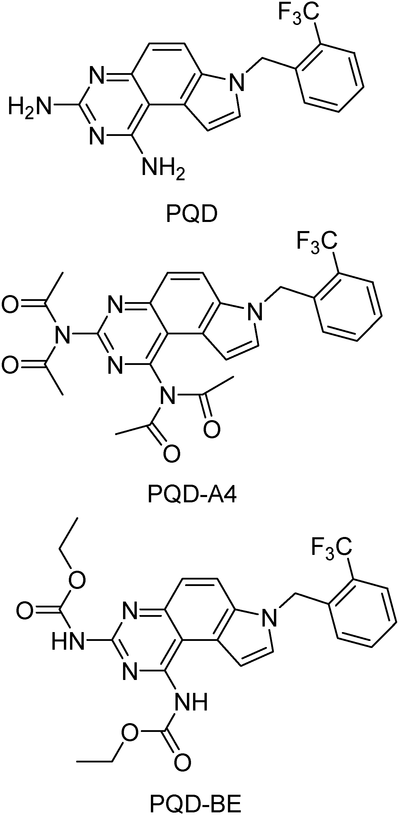 - Ledig, K. W. 7-(Substituted)-7H-pyrrolo[3,2,-f]quinazoline-1,3-diamines. U.S. Patent 4,118,561, 1978. [Google Scholar]