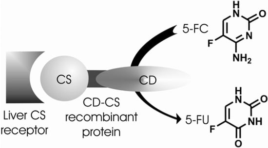 - Lin-Lee, Y-C.; Nakamura, S.; Gandhi, V.; Curley, S. A.; Stüber, D.; Burkot, T. R.; Kuo, M. T. Prolonged stability and sustained prodrug cell killing activity using receptor-mediated delivery of malarial circumsporozoite-cytosine deaminase fusion protein into liver cancer cells. Mol. Cancer Ther. 2002, 1, 461–467. [Google Scholar] [CrossRef]