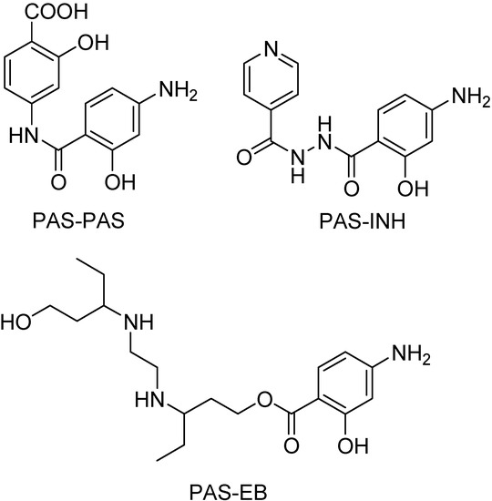 - Prateek, J. R.; Jaim, K.; Ravichandran, V.; Agrawal, R. K. Synthesis and evaluation of mutual prodrugs of isoniazid, p-amino salicylic acid and ethambutol. Arkivoc 2007, 1, 105–118. [Google Scholar]