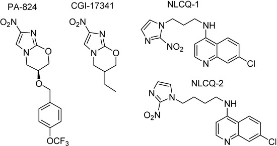 - Stover, C. K.; Warrener, P.; Vandevanter, D. R.; Sherman, D. R.; Arain, T. M.; Langhorne, M. H.; Anderson, S. W.; Towell, J. A.; Yuan, Y.; McMurray, D. N.; Kreiswirth, B. N.; Barry, C. E.; Baker, W. R. A small-molecule nitroimidazopyran drug candidate for the treatment of tuberculosis. Nature 2000, 405, 962–966. [Google Scholar] [CrossRef]