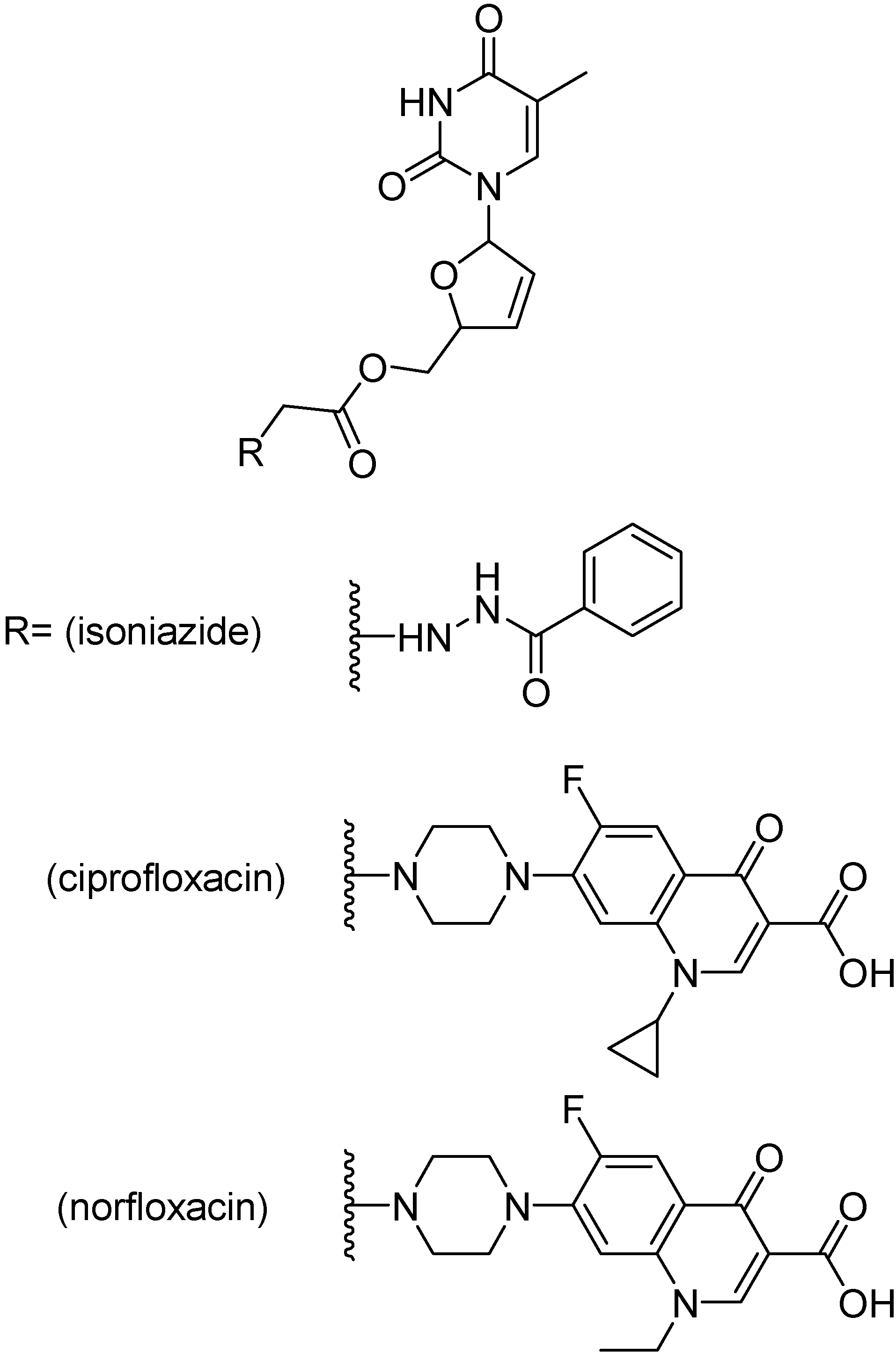 - Sriram, D.; Yogeeswari, P.; Gopal, G. Synthesis, anti-HIV and antitubercular activities of lamivudine prodrugs. Eur. J. Med. Chem. 2005, 40, 1373–1376. [Google Scholar] [CrossRef]