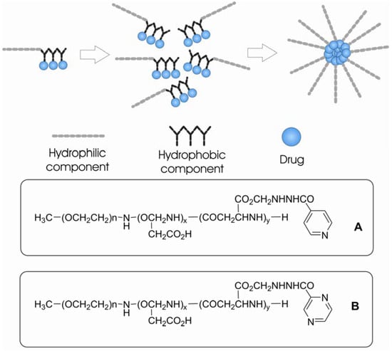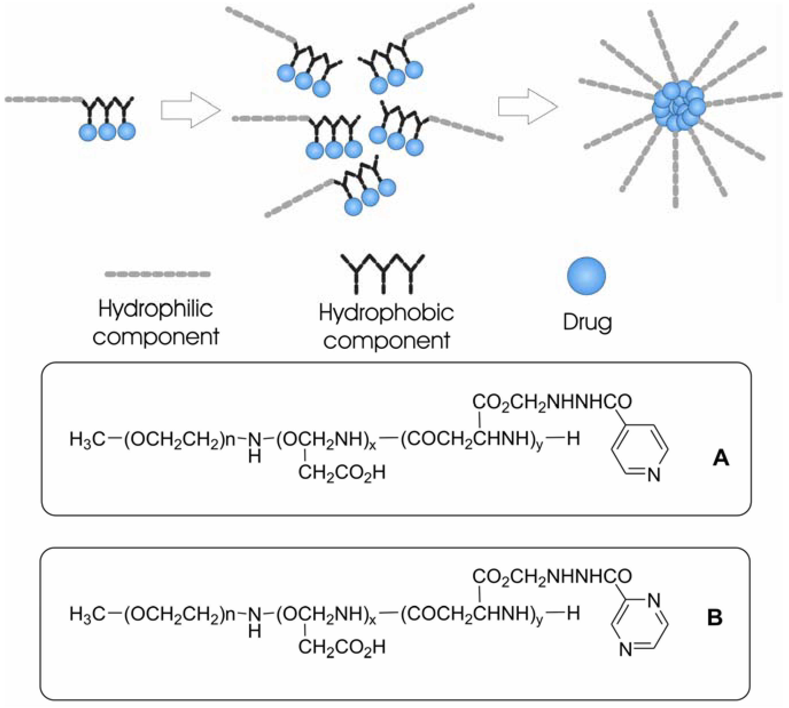 - Silva, M.; Lara, A. S.; Leite, C. Q. F.; Ferreira, E. I. Potential tuberculostatic agents: micelle-forming copolymer poly(ethyleneglycol)-poly(aspartic acid) prodrug with isoniazid. Arch. Pharm. Pharm. Med. Chem. 2001, 334, 189–193. [Google Scholar] [CrossRef]