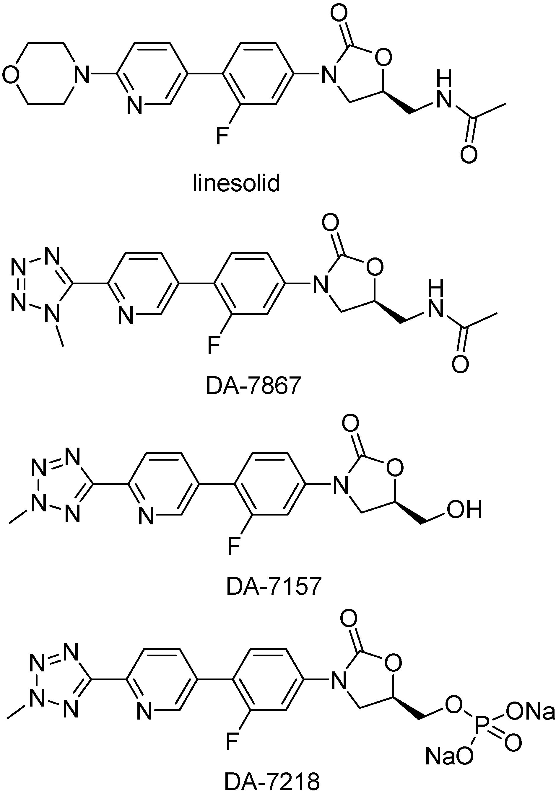 - Vera-Cabrera, L.; Gonzalez, E.; Rendon, A.; Ocampo-Candiani, J.; Welsh, O.; Velazquez-Moreno, V. M.; Choi, S. H.; Molina-Torres, C. In Vitro Activities of DA-7157 and DA-7218 against Mycobacterium tuberculosis and Nocardia brasiliensis. Antimicrob. Agents Chemother. 2006, 50, 3170–3172. [Google Scholar] [CrossRef]