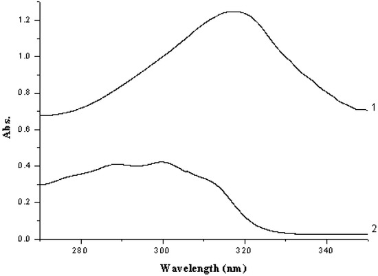UV absorption spectra of 4a in (1) the solid state and (2) DMF (1×10-5M).