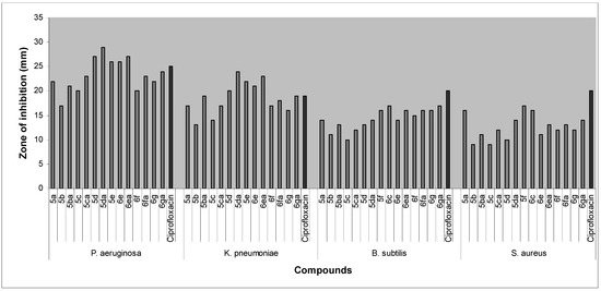 5a-6ga were evaluated for their antimicrobial activity against four bacterial strains: