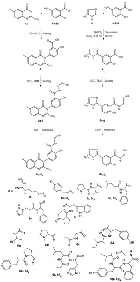 General method for hydrolysis of amino acid /peptide derivatives of 2-hydroxy-5-(6-iodo-2-methyl-4-oxo-3,4-dihydro-3-quinazolinyl)benzoic acid (5) / 2-hydroxy-5-(5-nitro-1H-imidazol-2-yl)benzoic acid (6)