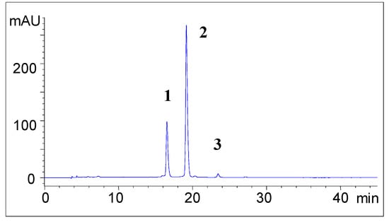 Since HPLC-DAD analysis showed three well resolved peaks (Figure 1), it was not necessary to fractionate and to concentrate each compound before mass analysis. Direct LC-SM analysis of the extract was possible without any risk of mass fragmentation overlapping within compounds.