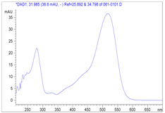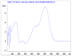 HPCL-DAD (λ 530nm) of dried Delonix regia flower extracts, macerated with acidified deionized water.