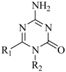 A mixture of guanylurea or guanylthiourea, orthoesters and dimethylformamide was refluxed for 90 min and allowed to stand at room temperature, the precipitate were recrystallized from the solution, then filtered off to give 4-amino-6-alkyl/aryl-1,3,5-triazin-2(1