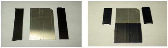 Figure 7a,b show the pictures after peel tests. Direct inspection shows that the aluminum substrate untreated by TES (Figure 7a) does not show any adhesive property to the EPDM rubber, while good and uniform adhesion is noted when TES self-assembly monolayer is used as the primer (Figure 7b). From the result, it can be concluded that TES may be used as effective adhesive between metal and rubber.