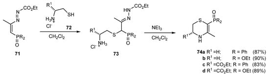 Addition of 1,2-diamines to phosphinyl- and phosphonyl-azoalkenes 83.