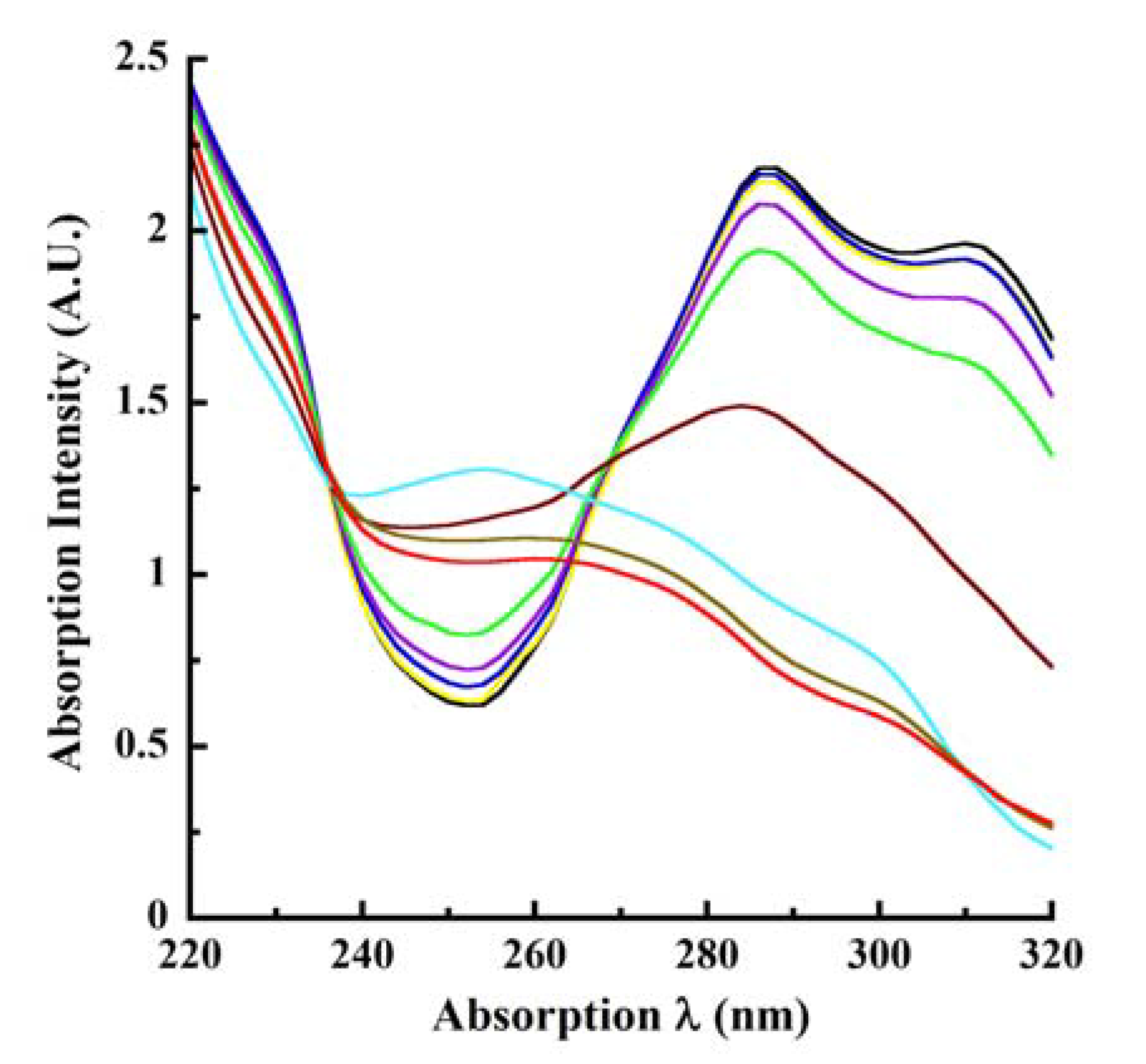 2.2. Absorption Spectroscopic Profiles of Unmodified CA