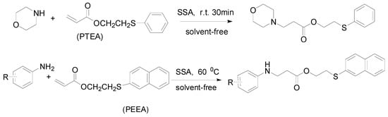- Saidi, M.R.; Pourshojaei, Y.; Fezzeh, A. Highly efficient michael addition reaction of amines catalyzed by silica-supported aluminum chloride. Synthetic Commun. 2009, 39, 1109–1119. [Google Scholar] [CrossRef]