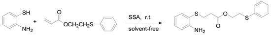 - Pore, D.M.; Soudagar, M.S.; Desai, U.V. Potassium phosphate or silica sulfuric acid catalyzed conjugate addition of thiols to alpha,beta-unsaturated ketones at room temperature under solvent-free conditions. Tetrahedron Lett. 2006, 47, 9325–9328. [Google Scholar] [CrossRef]