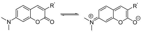 - Gao, F.; Li, H.R.; Zang, Y.Y. Influence of the molecular structure and medium on the absorption and emission character of ketocoumarin derivatives and probability of as fluorescence probes. Dyes Pigments 2000, 47, 231–238. [Google Scholar] [CrossRef]