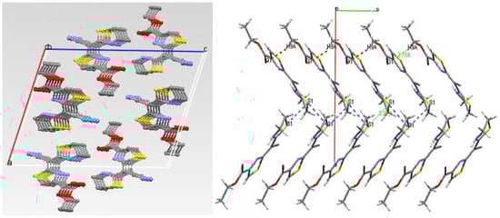 For exact determination of these geometric isomers 4a,b, single crystal X-ray analysis would seem to be preferable to other available techniques but all our efforts to prepare a suitable single crystal from compound 4 were unsuccessful, but instead we obtained a single crystal from the derivative ethyl 2-(E)-cyano(thiazolidin-2-ylidene)methyl)thiazole-4-carboxylate (5a). X-ray quality crystals were grown from ethanol with slow evaporation. A crystal structure was determined for product 5a and is shown in Figure 1. The molecule exists in the E geometric form with respect to C1-C4 bond. This observation clearly indicates that compound 4 must have the E isomeric structure 4a. The packing diagram of 5a shows that there is intermolecular hydrogen bonding between the hydrogen atom on the N1 and the N2 atom. Another intramolecular interaction is Van der Waals interaction between molecules. The high contact interaction between S1…S1 (3.777 Å) and O1…H9A (2.709 Å) gives rise to crystal growth expansion along b axis (see Figure 2).
