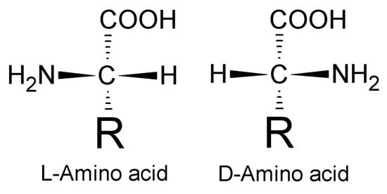 - Kreil, G. d-amino acids in animal peptides. Annu. Rev. Biochem. 1997, 66, 337–345. [Google Scholar] [CrossRef] [PubMed]