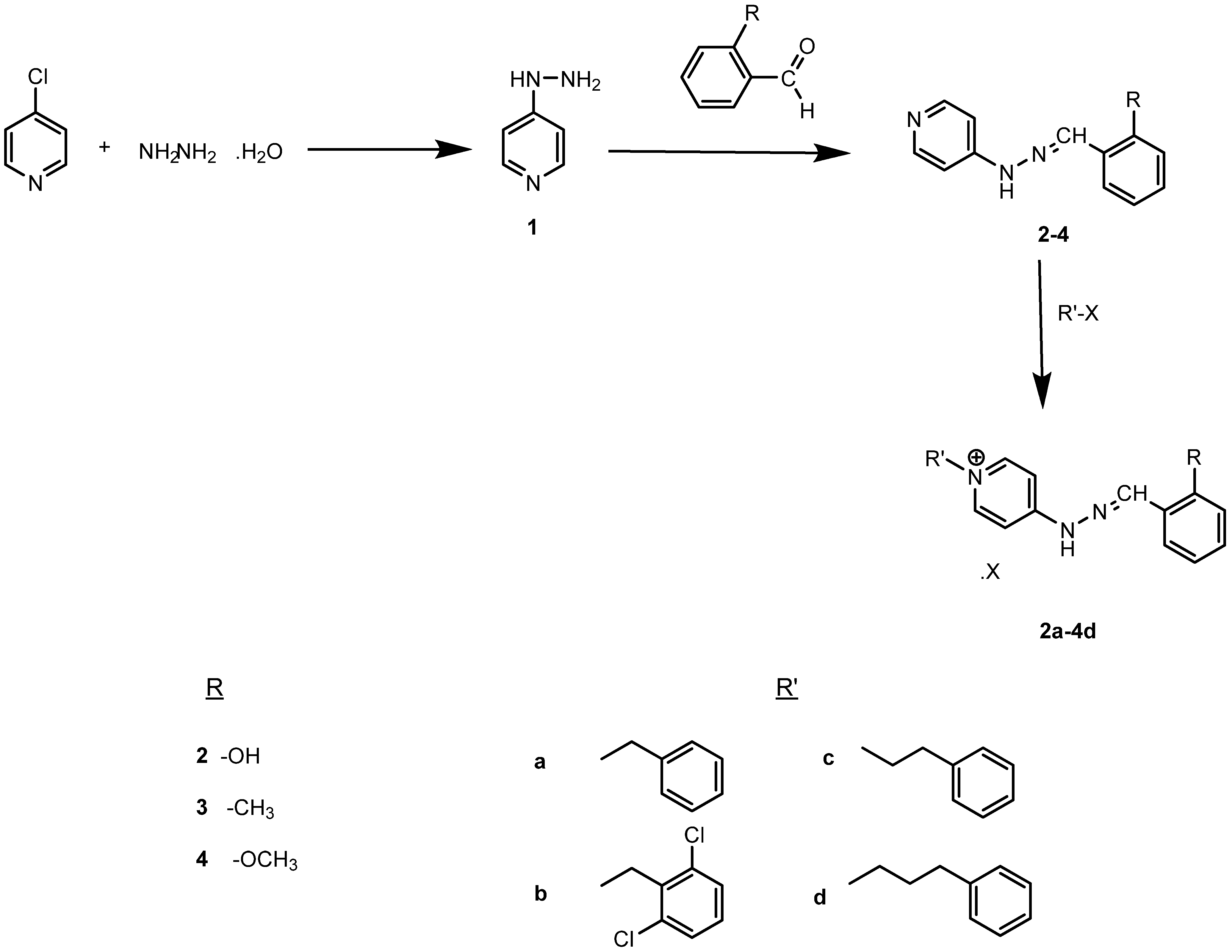 General Procedure for Synthesis of Benzylidenehydrazinylpyridine Derivatives 2–4