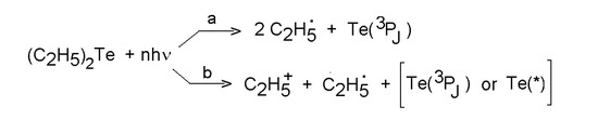 - Connor, J.; Greig, G.; Strausz, O.P. The Reactions of Tellurium Atoms. J. Am. Chem. Soc. 1969, 91, 5695–5696. [Google Scholar] [CrossRef]