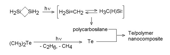 - Pola, J.; Urbanová, M.; Volnina, E.A.; Bakardjieva, S.; Šubrt, J.; Bastl, Z. Polymer-Stabilized Nano-Sized Tellurium Films by Laser-Induced Chemical Vapour Co-Deposition Process. J. Mater. Chem. 2003, 13, 394–398. [Google Scholar] [CrossRef]