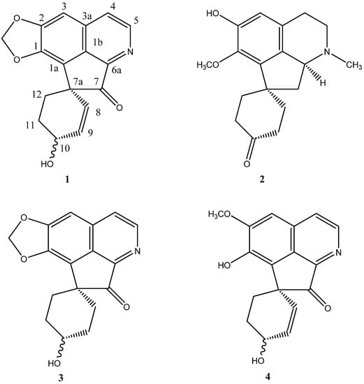 - Stermitz, F.R.; Castro, C.O. Pentasubstituted Aporphine Alkaloids from Phoebe molicella. J. Nat. Prod. 1983, 46, 913–916. [Google Scholar] [CrossRef]