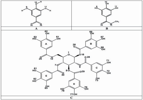 Structures of GA, MG and PGG (Figure 5) were constructed and optimized at the HF/3−21G level of theory using Gaussian 03 program [27]. The three−dimensional structures of rhodostoxin and kaouthiagin from CR and NK venoms, respectively, were built by homology modeling technique using Geno3D web server [28].