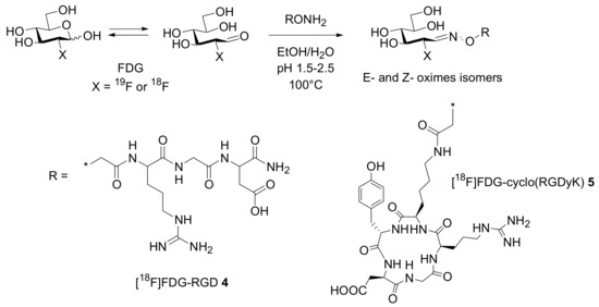 Synthesis of [18F]FDG-RGD 6 by chemoselective oxime ligation.
