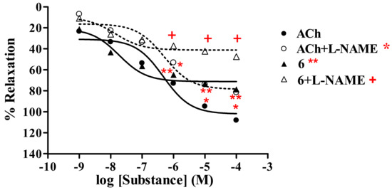 Effect of 6 on the vascular function of rat thoracic aorta in the presence of L-NAME (1 mM) compared with ACh.