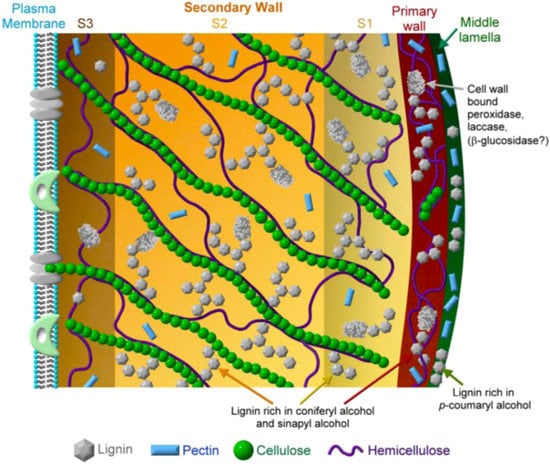 - Donaldson, L.A. Lignification and lignin topochemistry – an ultrastructural view. Phytochemistry 2001, 57, 859–873. [Google Scholar] [CrossRef]