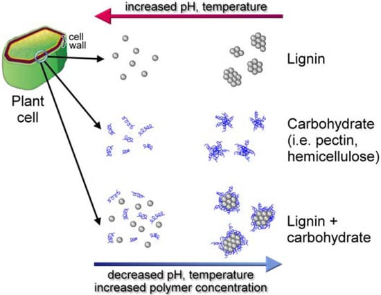 - Micic, M.; Radotic, K.; Jeremic, M.; Leblanc, R.M. Study of self-assembly of the lignin model compound on cellulose model substrate. Macromol. Biosci. 2003, 3, 100–106. [Google Scholar] [CrossRef]
