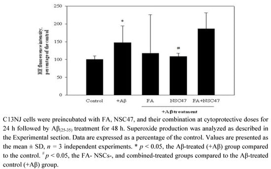 Effects of folic acid (FA) or/and NSC47 on superoxide production by β-amyloid (Aβ)-treated C13NJ cells.