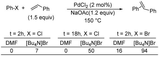 It is noteworthy that PdCl2 displayed an increased reactivity in [Bu4N]Br when compared with DMF, a “classic” solvent for Heck reactions (Scheme 3).