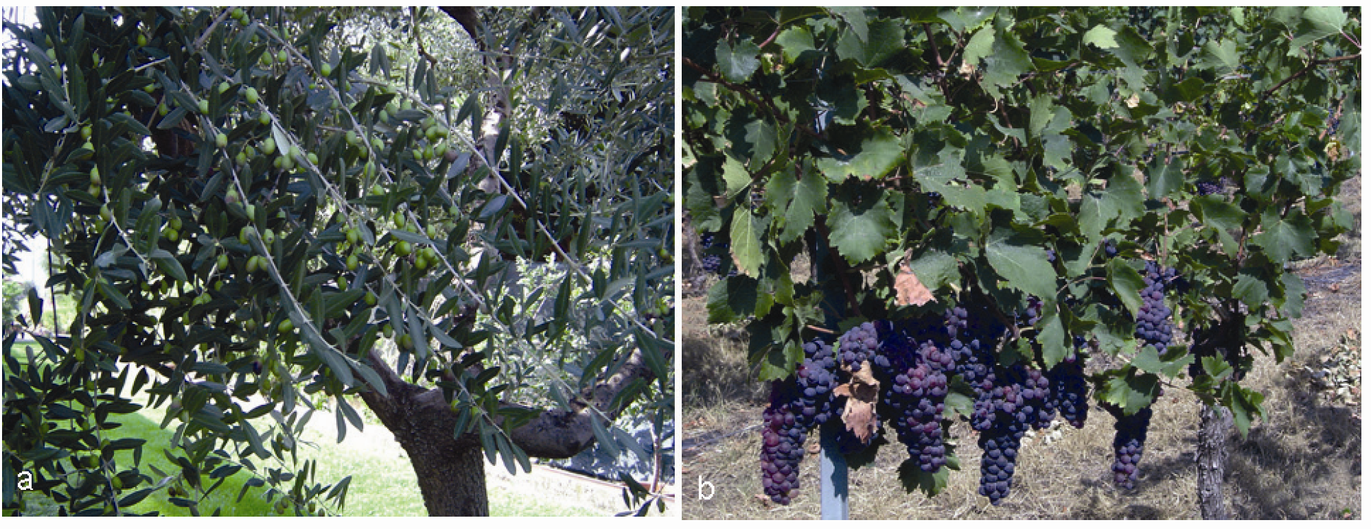 Traditional Mediterranean cultivations: Olea europea L. (a) and Vitis vinifera L. (b).
