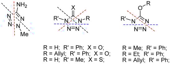 Several tetrazole derivatives have also been studied regarding their photochemical fragmentation reactions, matrix-isolated or in solution [,,,,,,,,,,,,,,,,,,,,,,]. Results show that the photodecomposition of tetrazoles always involves cleavage of the tetrazolyl ring, leading to a variety of photoproducts. For these compounds, the structure of the substituents present in the tetrazole ring was found to strongly determine the nature of the photoproducts. Two other factors that contribute to the diversity in the photodegradation pathways and the variety of photoproducts are the possibility of tautomerism (which is associated with the presence in the molecule of labile hydrogen atoms) and the conformational flexibility of the substituents. In the case of substituted tetrazoles, tautomerism may also involve substituent groups [,,]. In general, the presence of labile hydrogen atoms (either directly linked to the tetrazole ring or belonging to the tetrazole substituents) is a source of complexity in photochemical reactions that opens additional reaction channels or allows for secondary photochemical reactions to take place concomitantly with the main primary photoprocesses [,,,,,]. When substituents are linked to the tetrazole ring, the photochemistry of the molecule can also be influenced by the their conformational flexibility, which may favour or exclude certain reaction channels [,,,,,], determining the precise nature and relative amount of the final photoproducts.
