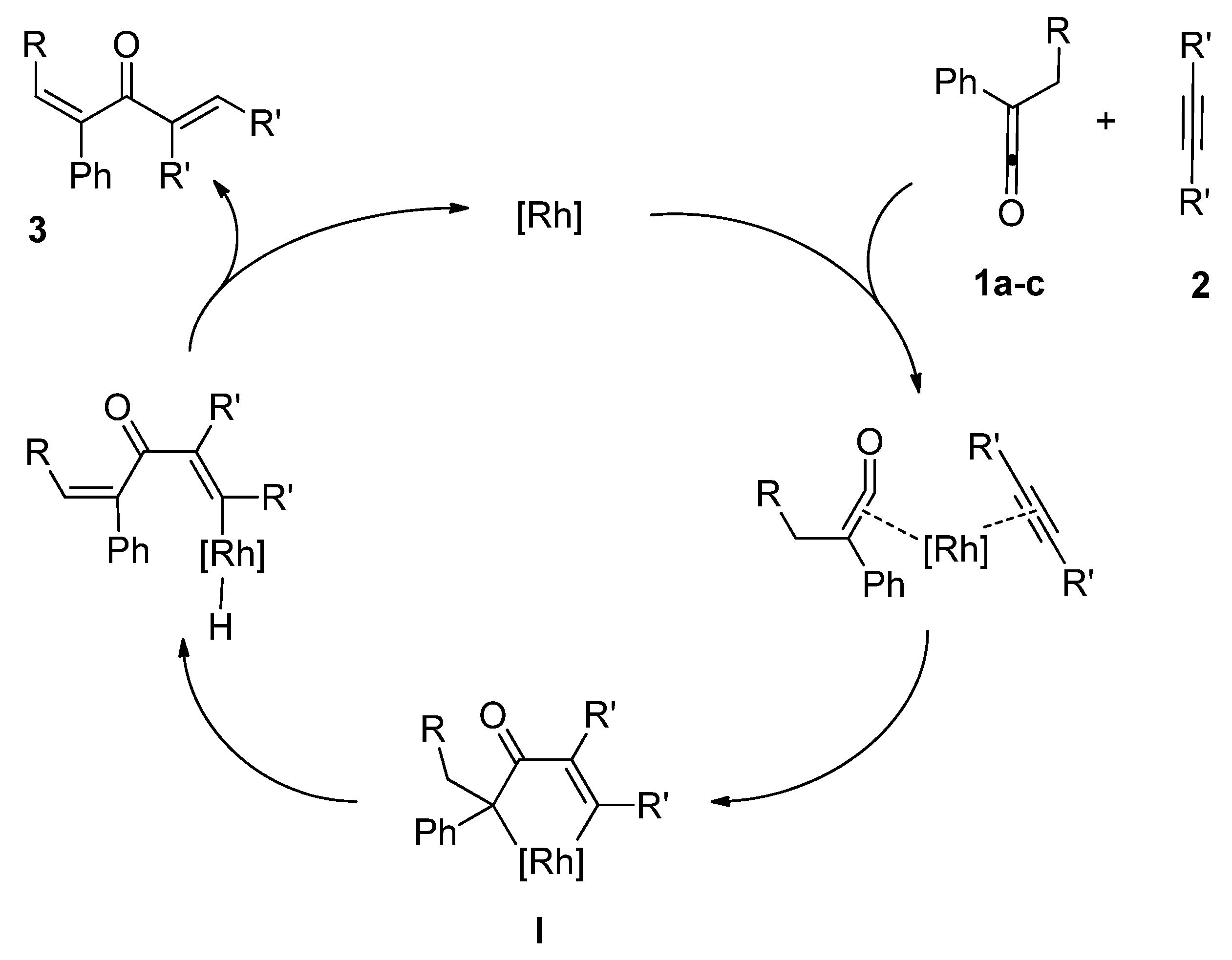 3.3. General procedure for the rhodium-catalyzed reaction of ketenes with alkynes to give dienones and furans