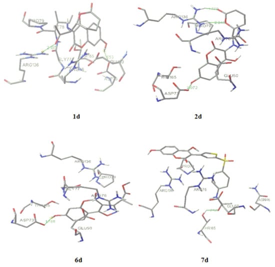 Molecular docking of the most active designed compounds 1d, 2d, 5d and7d.