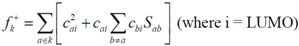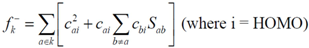 with cai being the LCAO coefficients and Sab the overlap matrix. The condensed Fukui functions are normalized, thus =1 and =[ + ]/2.