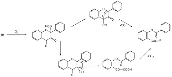 Suggested mechanism of photosensitized oxygenation of 3-hydroxyflavones.