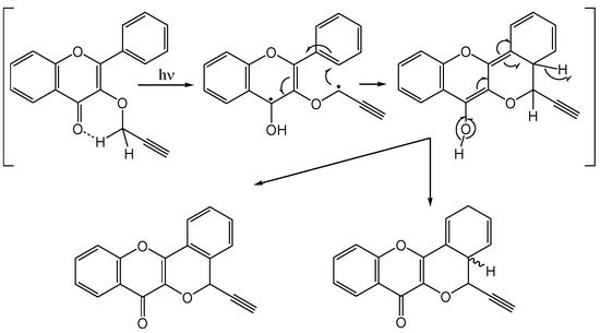 - Thakur, M.; Berar, S.; Berar, U.; Arora, S.; Gupta, S.C.; Kamboj, R.C. Phototransformations of 6-Chloro-3-propargyloxy-2-aryl-4-oxo-4H-1-benzopyran: 1,4-Hydrogen Abstraction in Propargyl-ethers. Tetrahedron 2008, 64, 5168–5173. [Google Scholar] [CrossRef]