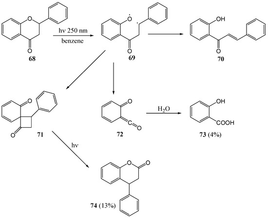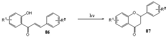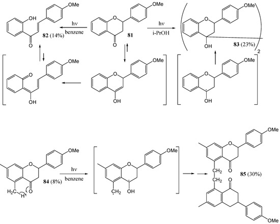 - Mack, P.O.; Pinhey, J.T. The Photochemistry of Flavanone. J. Chem. Soc. Chem. Commun. 1972, 451–452. [Google Scholar]