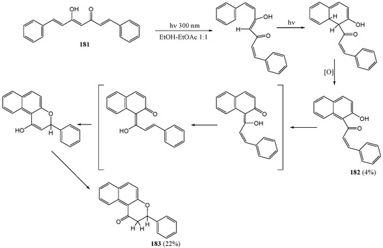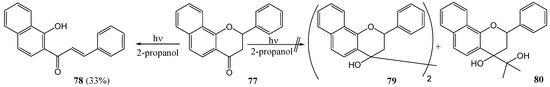 - Dewar, D.; Sutherland, G. The Photolysis of 2-Hydroxychalcone and Its Possible Implication in Flavonoid Biosynthesis. Chem. Commun. 1970, 272–273. [Google Scholar]