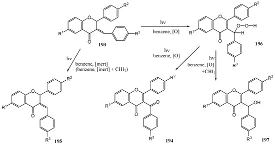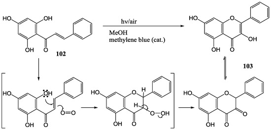 - Chawla, H.M.; Chibber, S.S. Biologically Patterned Sensitized Photooxygenation of Chalcones. Tetrahedron Lett. 1976, 25, 2171–2172. [Google Scholar]