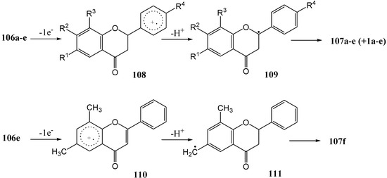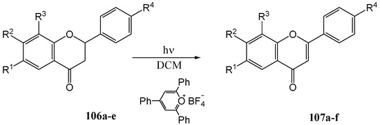 - Climent, M.J.; García, H.; Iborra, S.; Miranda, M.A.; Primo, J. Photosensitized Dehydrogenation of Flavanones to Flavones Using 2,4,6-Triphenylpyrylium tetrafluoroborate (TPT). Heterocycles 1989, 29, 115–121. [Google Scholar] [CrossRef]