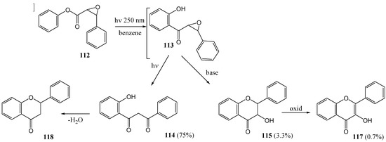 - Ramakrishnan, V.T.; Kagan, J. The Photochemical Conversion of Phenyl Epoxycinnamate to Flavonoids and Synthesis of 2´-Hydroxyepoxychalcone. J. Org. Chem. 1970, 35, 2898–2900. [Google Scholar] [CrossRef]