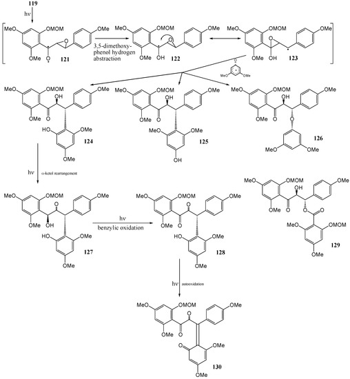 - Van der Westhuizen, J.H.; Ferreira, D.; Roux, D.G. A Novel Photochemical Structural Inversion: The first Methoxy-hydroxymethyl Isomerization. J. Chem. Soc., Perkin Trans. I 1980, 1540–1543. [Google Scholar] [CrossRef]