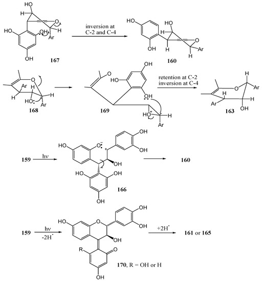 - Van der Westhuizen, J.H.; Ferreira, D.; Roux, D.G. Some Novel Photochemical and Related Aryl Couplings and Migrations in Flavonoid Synthesis. J. Chem. Soc., Perkin Trans. I 1980, 2856–2865. [Google Scholar]