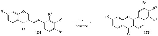 - Yokoe, I.; Higushi, K.; Shirataki, Y.; Komatsu, M. Photochemistry of Flavonoids. V. Photocyclization of 2-Styryl-4H-chromen-4-ones. Chem. Pharm. Bull. 1981, 29, 2670–2674. [Google Scholar]